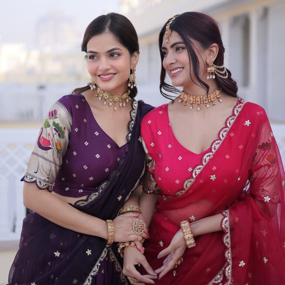 • Fabric and Work:- Dola silk with Meena With Sequins coding Embroidered lace Work.
