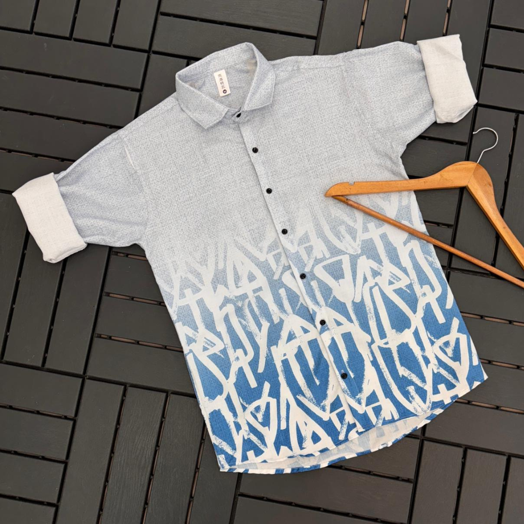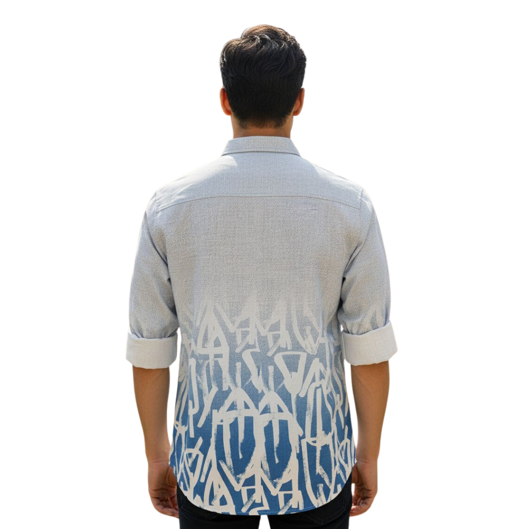 The men’s long-sleeve casual shirt lets you make a bold yet refined statement that’s designed with a seamless blend of comfort and creativity. It features a gradient transition from soft grey to ocean blue, adorned with artistic white brushstroke patterns. The shirt looks incredible when paired with dark trousers or denim, offering versatility for any occasion.